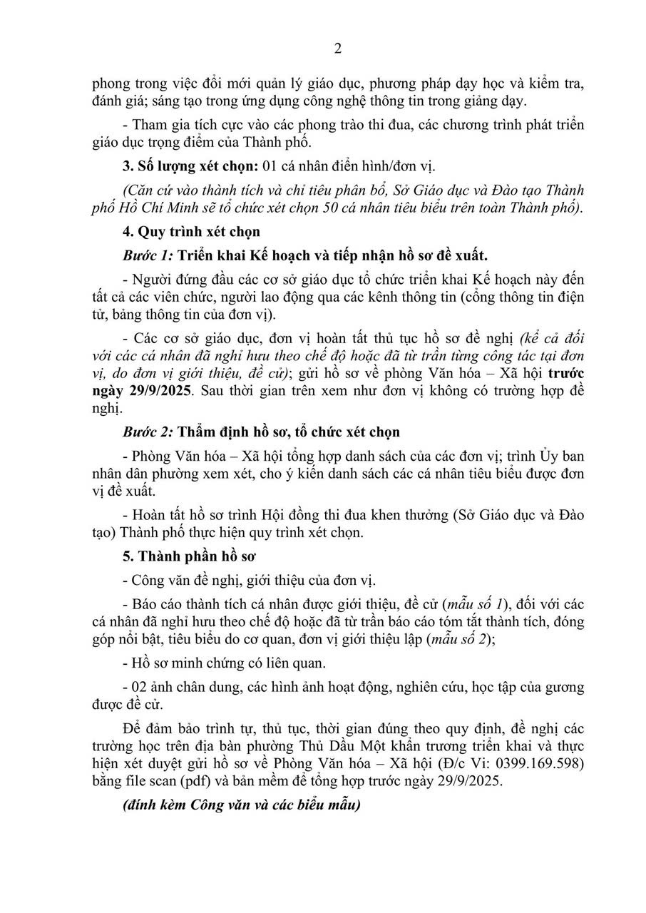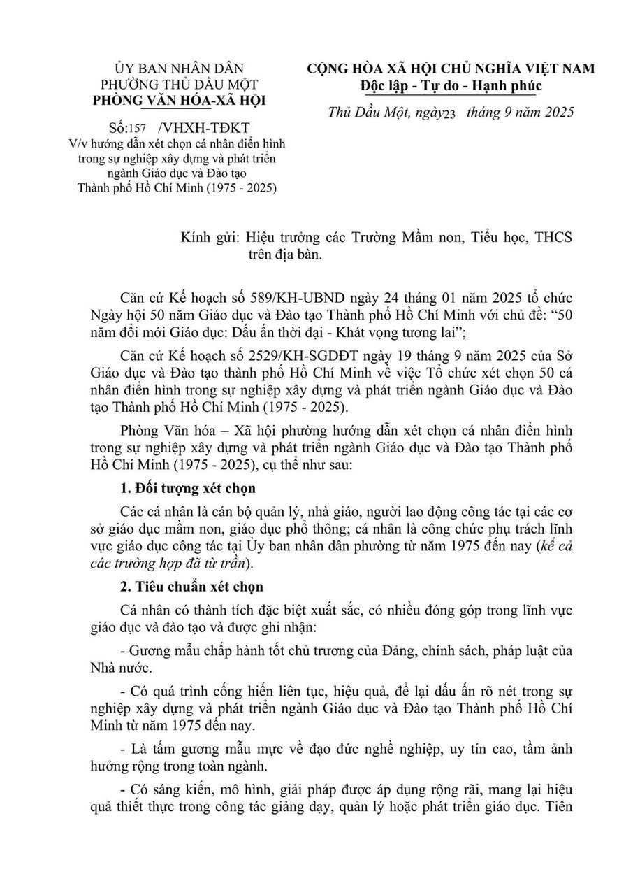 Hướng dẫn xét chọn cá nhân điển hình trong sự nghiệp xây dựng và phát triển ngành giáo dục và đào tạo thành phố Hồ Chí Minh (1975 -2025)