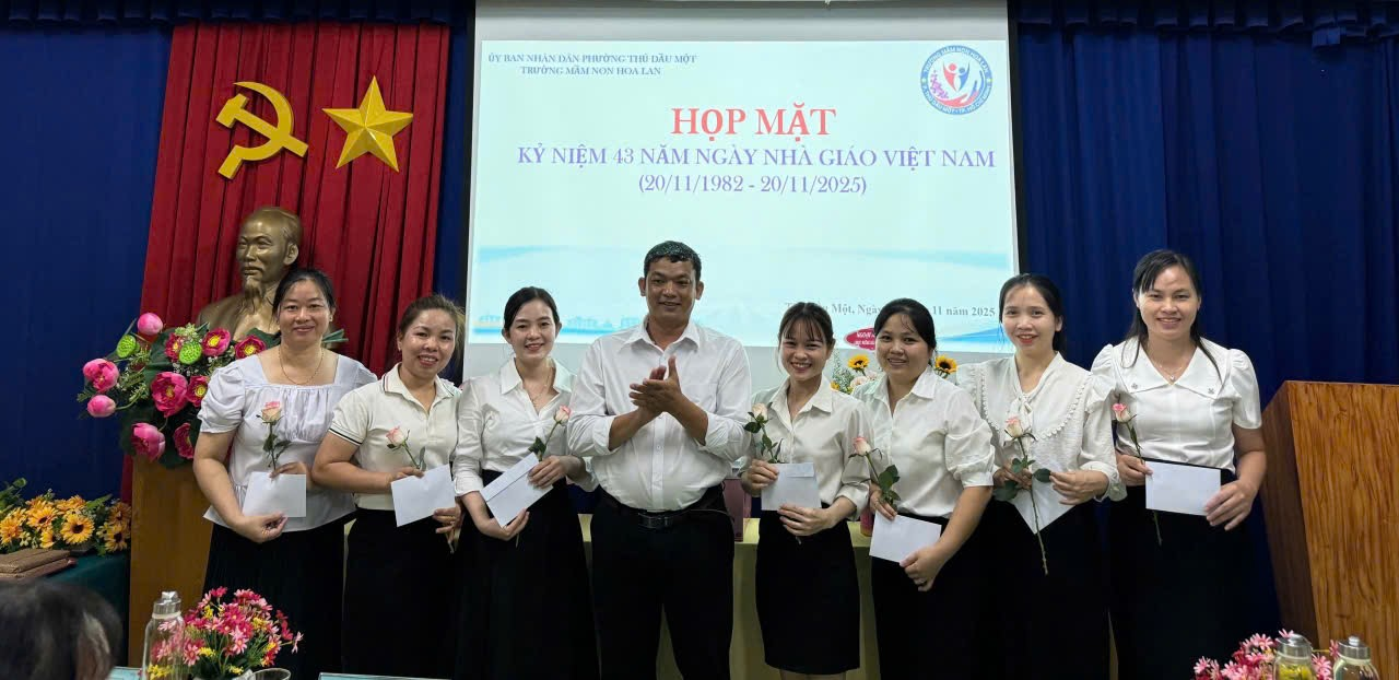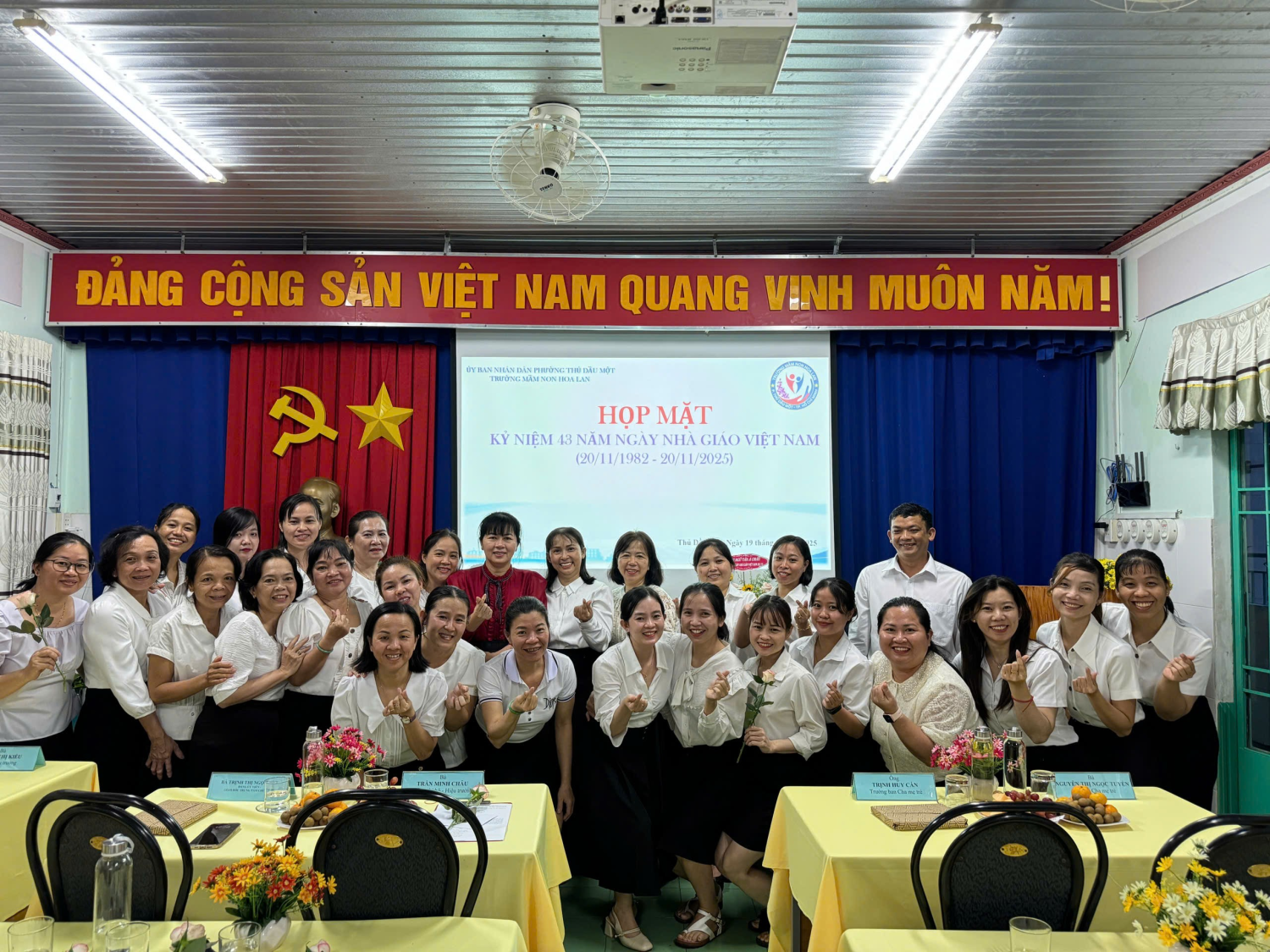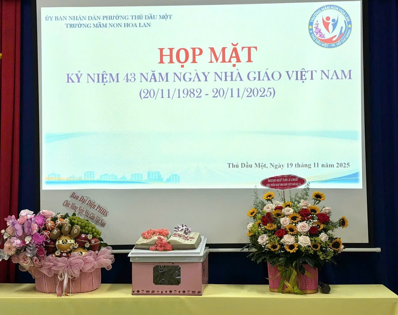 Ngày 19/11/2025, Trường Mầm non Hoa Lan long trọng tổ chức buổi họp mặt kỷ niệm 43 năm Ngày Nhà giáo Việt Nam (20/11/1982 – 20/11/2025). Đây là hoạt động có ý nghĩa sâu sắc nhằm tri ân các thế hệ nhà giáo đã và đang cống hiến cho sự nghiệp trồng người, đồng thời tuyên truyền, giáo dục truyền thống “Tôn sư trọng đạo” trong đội ngũ cán bộ, giáo viên, nhân viên toàn trường. 🌸