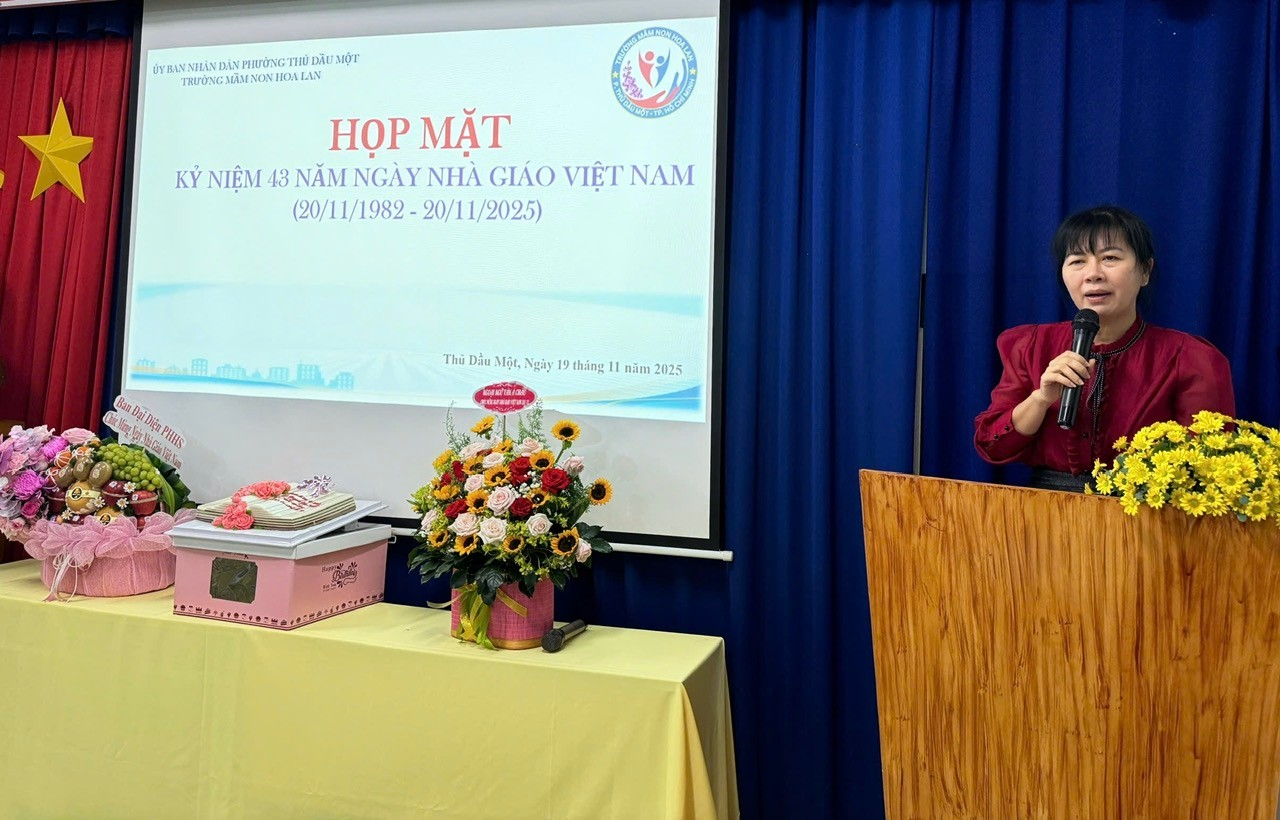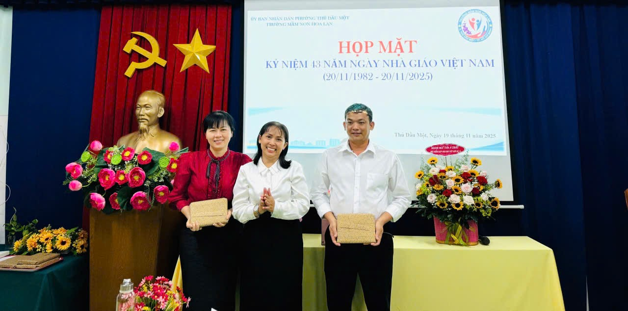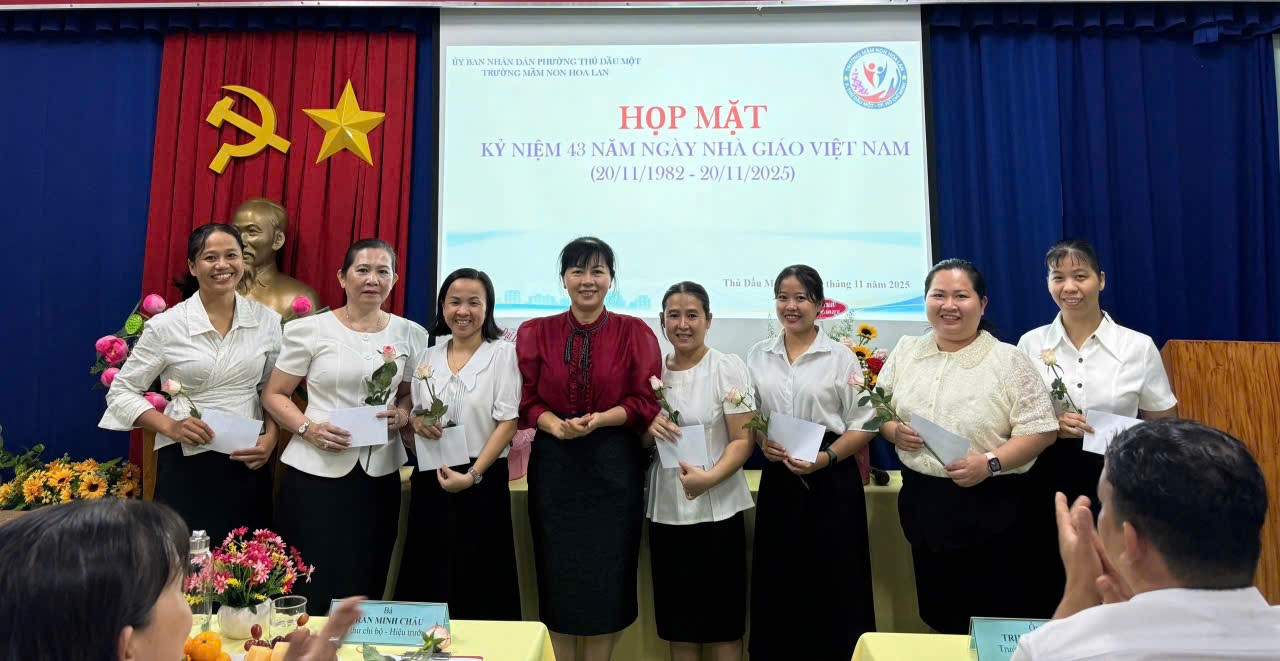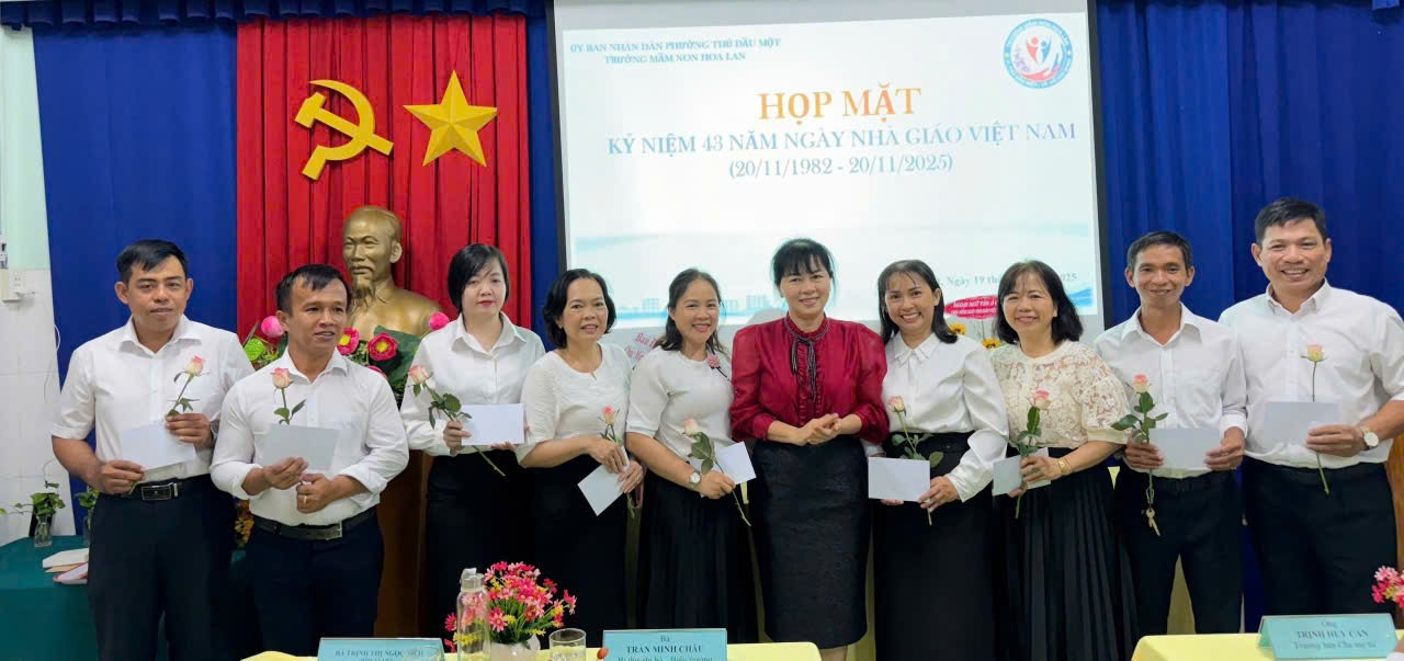 Ngày 19/11/2025, Trường Mầm non Hoa Lan long trọng tổ chức buổi họp mặt kỷ niệm 43 năm Ngày Nhà giáo Việt Nam (20/11/1982 – 20/11/2025). Đây là hoạt động có ý nghĩa sâu sắc nhằm tri ân các thế hệ nhà giáo đã và đang cống hiến cho sự nghiệp trồng người, đồng thời tuyên truyền, giáo dục truyền thống “Tôn sư trọng đạo” trong đội ngũ cán bộ, giáo viên, nhân viên toàn trường. 🌸