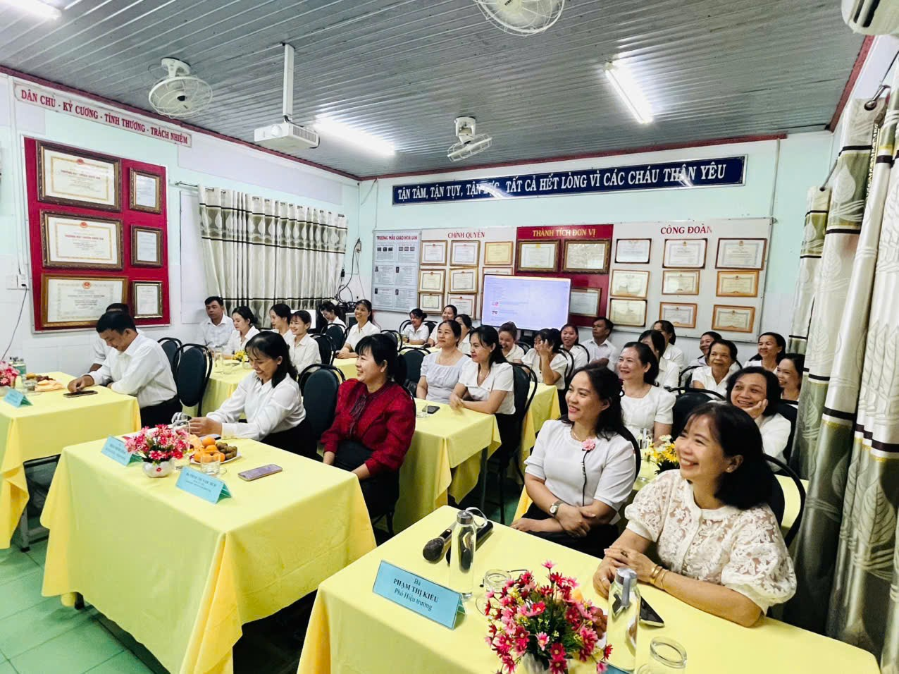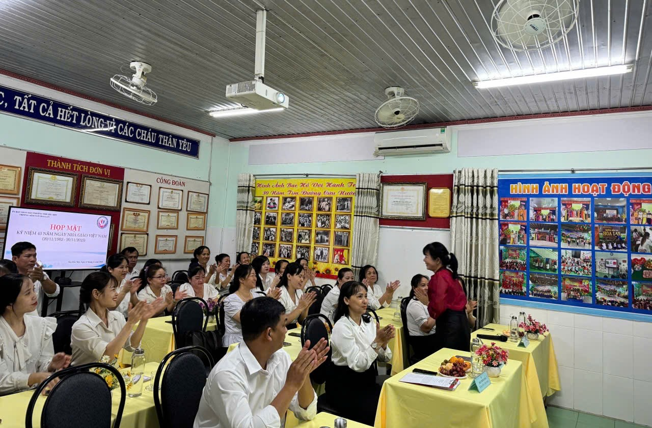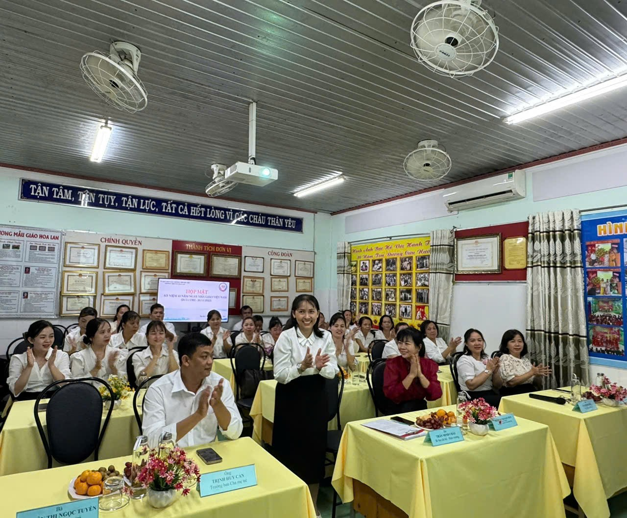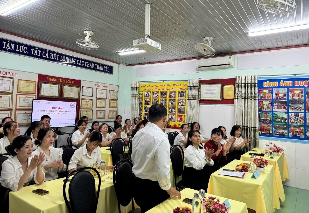 📚Cũng trong buổi họp mặt, những giá trị tốt đẹp của truyền thống "Tôn sư trọng đạo" được tri ân sâu sắc. Thấu hiểu điều đó, đội ngũ giáo viên của trường không ngừng nỗ lực, tận tâm với từng bữa ăn, giấc ngủ, từng bài học, lời dạy cho trẻ. Nhờ tinh thần trách nhiệm và tình yêu nghề – mến trẻ, công tác chăm sóc, nuôi dưỡng, giáo dục trẻ tại nhà trường ngày càng đi vào nề nếp, ghi dấu nhiều kết quả đáng tự hào.